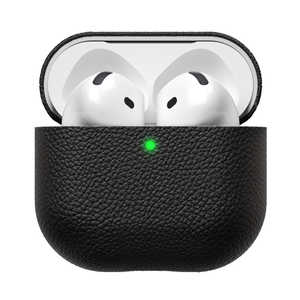 AirPods 4 ケース 用 ソフトレザー カバー < ワイヤレス / MagSafe 充電対応 > 衝撃吸収 落下防止 カラビナ付 メッキ加工 ブラック AVA-AP06PLMBK