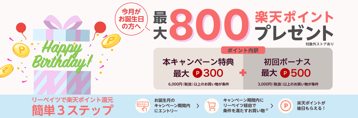 キャンペーン期間内お誕生日を迎えられる全リーベイツ会員(リーベイツ アカウントをお持ちの方)