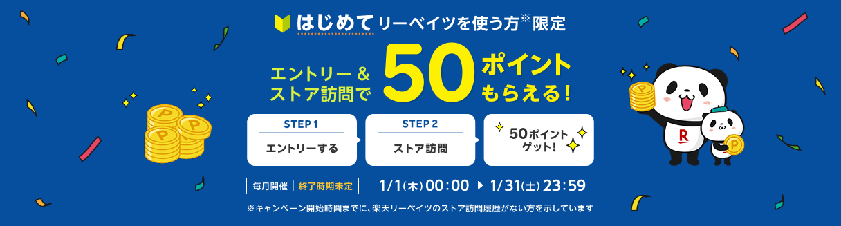 - キャンペーン開始時間までに楽天リーベイツのストア訪問履歴がない リーベイツ会員(リーベイツ アカウントをお持ちの方)