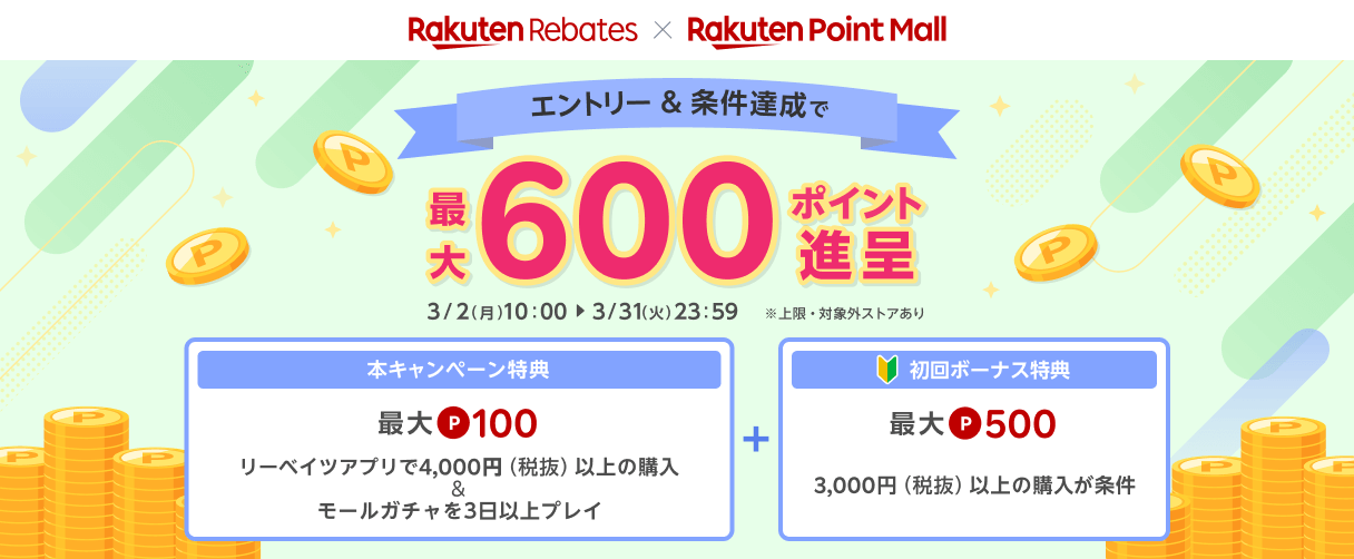 リーベイツ x ポイントモール 最大600ポイント進呈キャンペーンについて(2026/3)