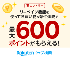 - 獲得ポイント数:楽天リーベイツアプリを経由して7,000 円(税抜)以上ご購入で300ポイント、1,000 円(税抜)以上ご購入で100ポイント進呈
