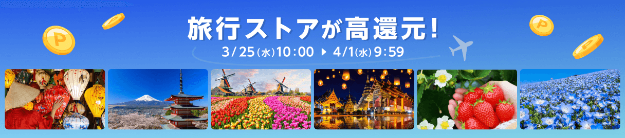 - 上記の旅行プランは利用イメージ例です。ご覧になるタイミングや、ご利用の旅行予約条件によって、適用価格や、ポイントバック率、実質ポイント還元数が変動します。