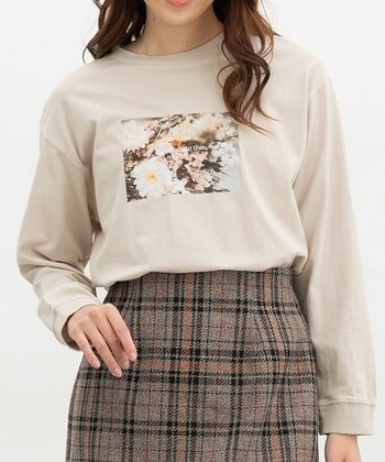 【SALE】agnes b. (Women)/アニエスベー フォトプリント スクエアネック 5分袖 トップス "Instagram fleurs" 0000マルチ 【三越伊勢丹/公式】