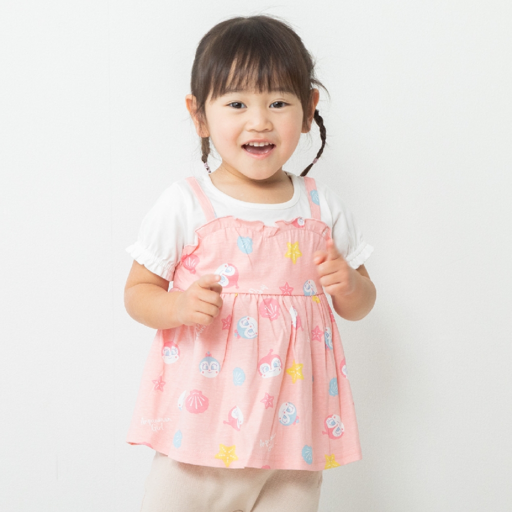 [ニッセン]サロペット風半袖ロンパース/ツーウェイオール(男の子 女の子)/ベビー服/ベビー用品/マタニティ / ベビー カバーオール/ツーウェイオール / ロンパース/カバーオール/ピンク/花柄)