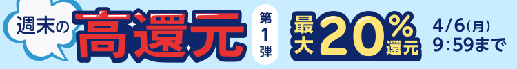 獲得ポイント(各種ボーナス+ポイントバックの合算)は、お買い物された金額(税抜)の20%を上限とさせていただきます。ポイント計算の詳細はこちらでご確認ください。