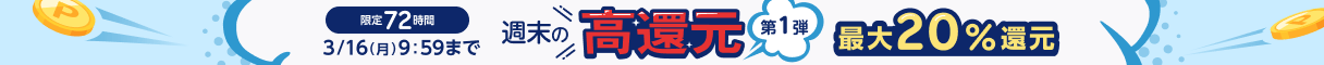 獲得ポイント(各種ボーナス+ポイントバックの合算)は、お買い物された金額(税抜)の20%を上限とさせていただきます。ポイント計算の詳細はこちらでご確認ください。